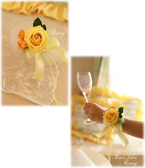 淡い黄色のドレスに合わせます。